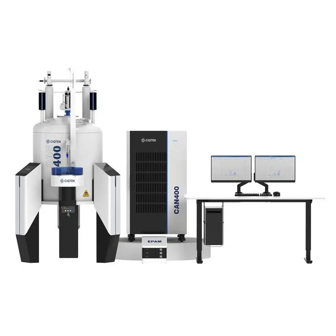 The CAN400 is an intelligent liquid-state nuclear magnetic resonance (NMR) spectrometer designed for advanced molecular analysis. The system combines a 400 MHz superconducting magnet with ultra-high homogeneity and ultra-shielding, a multifunctional intelligent console, and a high-sensitivity probe with automatic tuning.